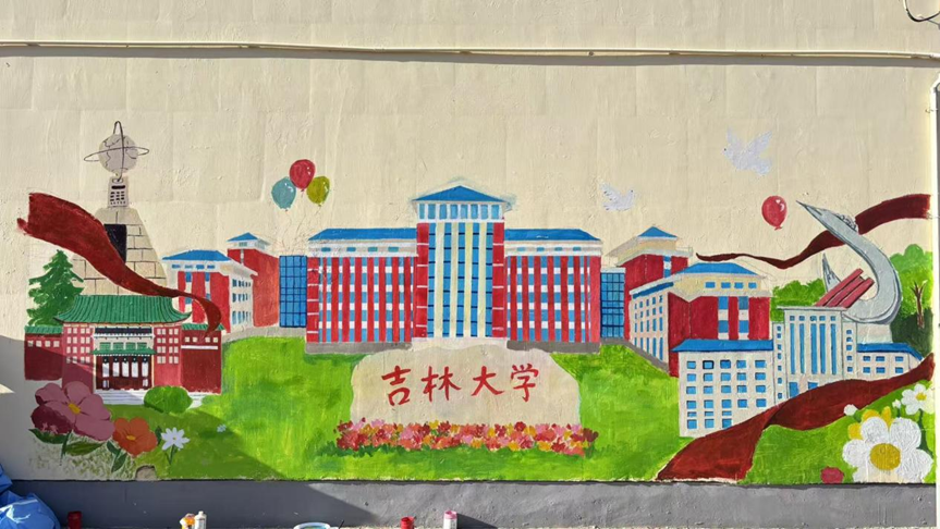 活动期间,同学们协同合作、精心创作,将骏马标识与春日杏花元素有机融合,生动展现吉大昂扬奋进、前程似锦的精神风貌。两幅主题作品亮相杏花大道墙面,吸引广大师生及返校校友驻足欣赏、打卡留念。