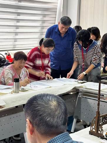 活动中,2024级音乐系步冰冰、王子墨、闫慧怡,绘画系乔文华,2025级设计系王煜霄、计宣宇、商镠、王金华、赵一诺,绘画系崔邺文等同学分工协作、各展所长。闫慧怡进行声乐表演,计宣宇讲解国画知识与水墨技法,阐释传统艺术文化内涵。社区居民亲手绘制了茶花、荷花等国画作品,感受中华优秀传统文化魅力。